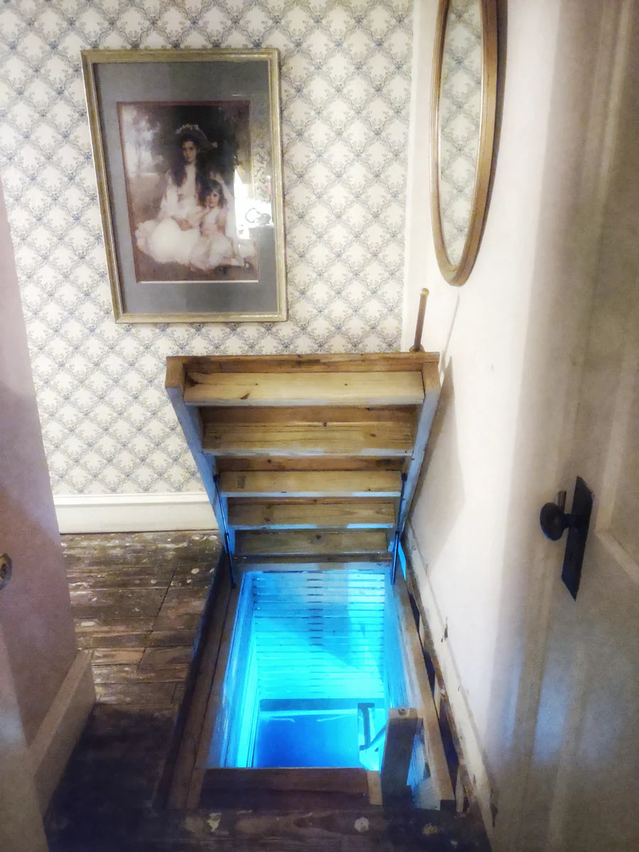 Of coarse no Speakeasy is complete without a secret entrance. This room has a private staircase with a trap door that leads down to the first floor of the hotel. You will have to book the room to see where it ends up.