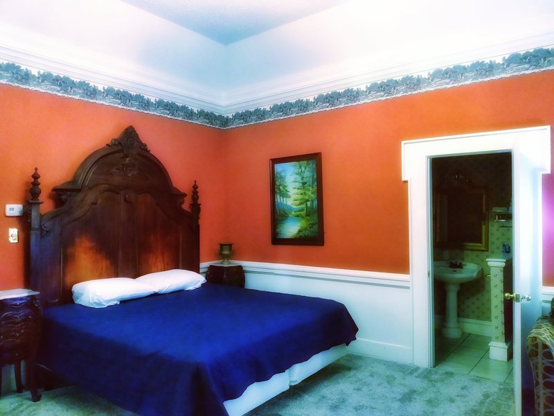 Room 2 is a downstairs room featuring 1 King bed with 262 Square feet. This room has a maximum of 2 people. Private Ball and Claw bath, large flat screen television with an Amazon Fire stick and high speed wireless Internet, Sitting area, and a mini fridge.